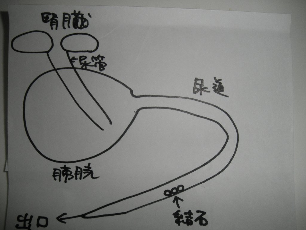膀胱結石があり、尿道に流れた際に詰まり、尿道結石を引き起こします。