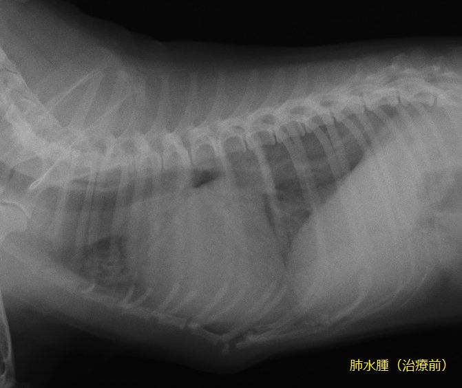 聴診、レントゲンにて肺水腫が確定しました。