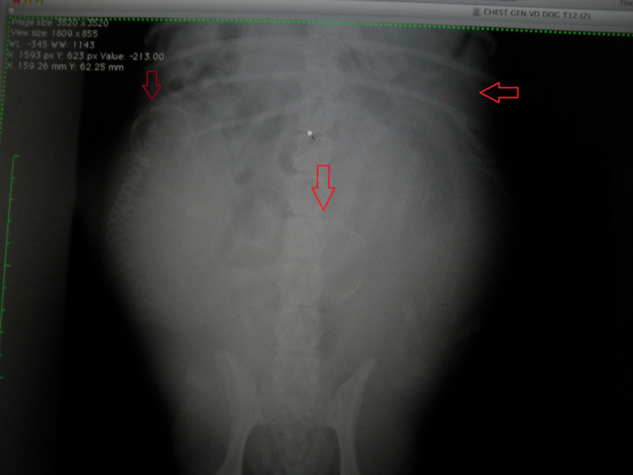 出産1週間前にレントゲンを実施し、胎子が何頭いるか、骨盤から出て自然出産できそうかを見ていきます。胎子の頭の大きさが大きすぎたら帝王切開を考えて、計画出産する必要があります。